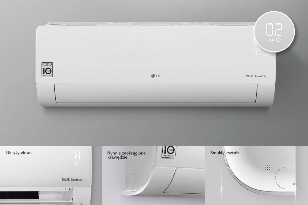 Klimatyzator LG DUALCOOL STANDARD 2 to urządzenie energooszczędne i wydajne, które zapewnia cichą pracę. Jego zaletą jest niezwykle prosta obsługa i komfortowe sterowanie za pomocą aplikacji w smartfonie. Jednostka ścienna LG STANDARD 2 charakteryzuje się kompaktową budową, która ułatwia instalację. Obudowa urządzenia jest elegancka i smukła, co sprawia, że sprawdzi się w każdym wnętrzu. Atutem urządzenia jest 10-letnia gwarancja producenta na sprężarkę Dual Inverter, która zapewnia długą żywotność i bezawaryjną pracę urządzenia.