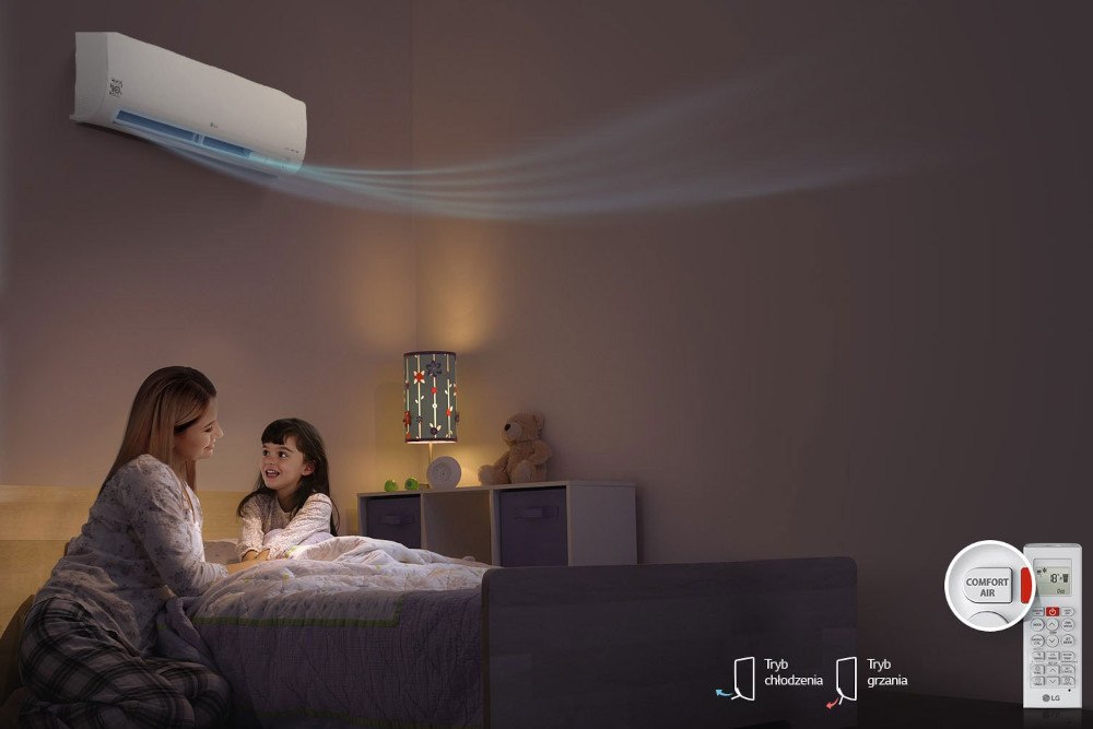 Komfort użytkowania dają dedykowane funkcje — m.in. Comfort Air, która zapewnia błyskawiczną konfigurację urządzenia w sposób zapewniający niebezpośredni nadmuch na osoby przebywające w pomieszczeniu. 6 poziomów nawiewu oraz czterokierunkowy nadmuch sprawiają, że klimatyzowane powietrze dystrybuowane jest po pomieszczeniu w sposób równomierny.